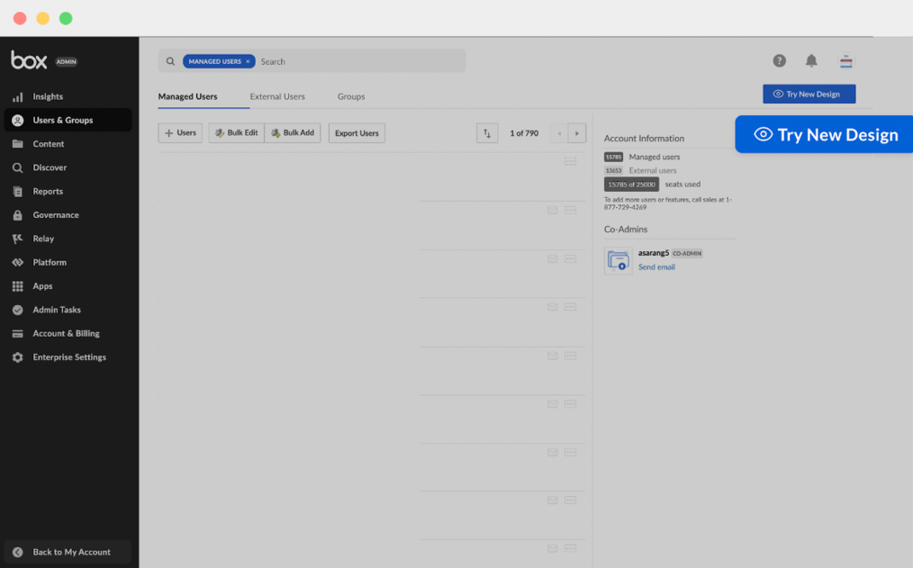 'Try New Design' button in Users & Groups: