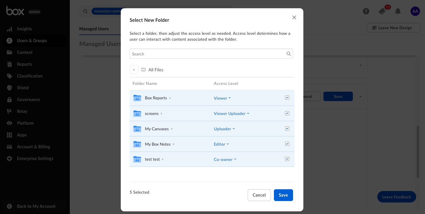 Streamlined folder access and groups management in user details