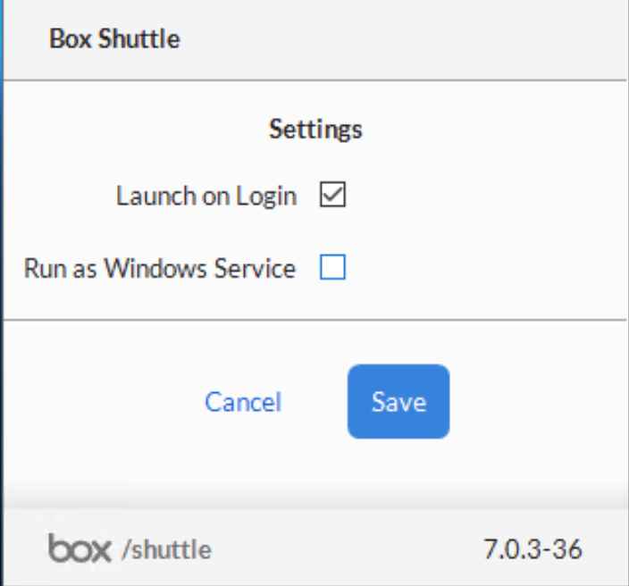 Box will disappear from the system tray and Shuttle will no longer have access to your files. You can start the agent at any time by double clicking on the Shuttle shortcut on your desktop.