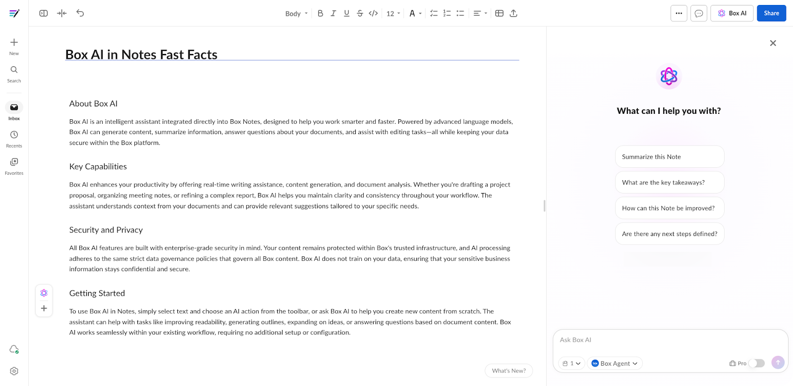 Get started creating or refining content with Box AI for Notes by opening a new or existing note.