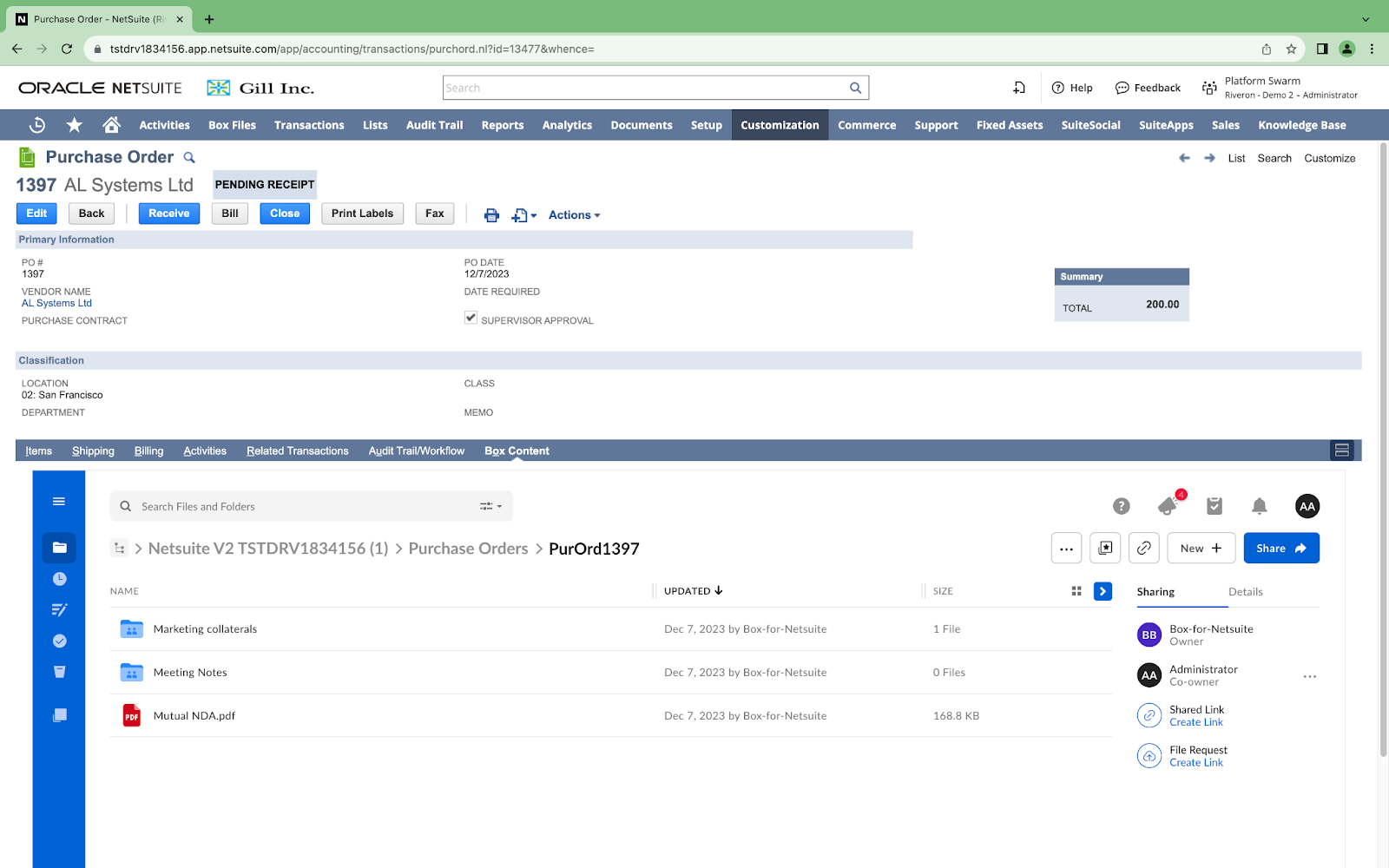 - For Box Record Folder - this results in being unable to view your mapped Box folders for a given NetSuite record.