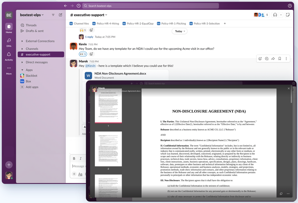 Box is committed to connecting your content in impactful ways, where it matters most. By working with Slack to provide interoperability between Box and Slack, we have established Box as the Content Layer for Slack, a powerful addition to Box for Slack which allows customers using Slack Custom File Store to upload files to Slack channels and have them store directly back to Box mapped folders.
