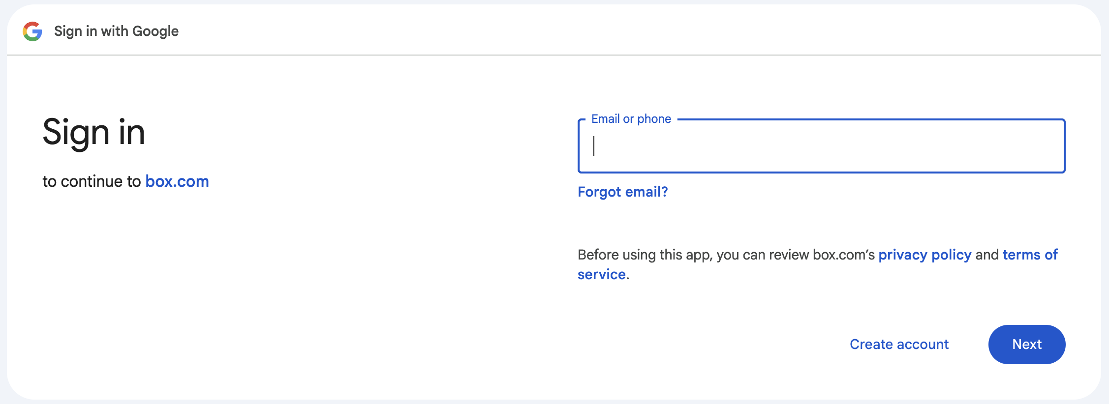To use your Google account while logging in to Box