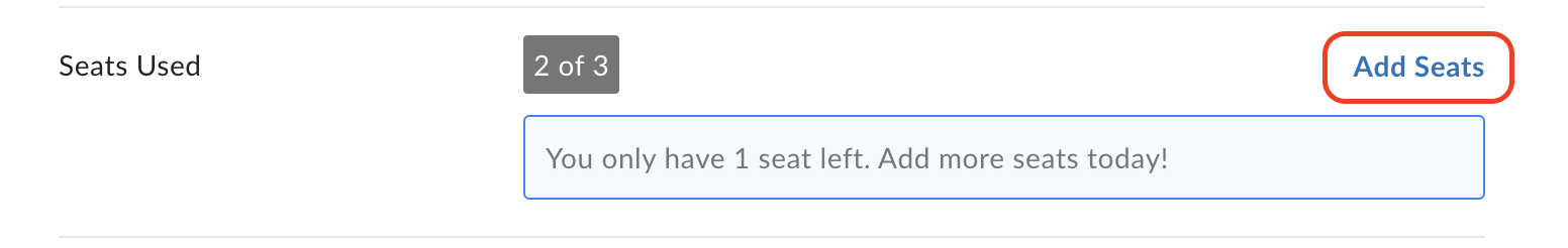 Note: All seat purchases will be a prorated charge based on the date of purchase to the end of your billing term. The new seats will be aligned to your billing term and not charged for the full year.