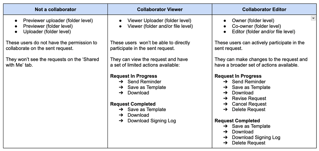 - Users will need to be invited as collaborators within the duplicate PDF file(s) that is created from the source file(s) when a signature request is initiated.