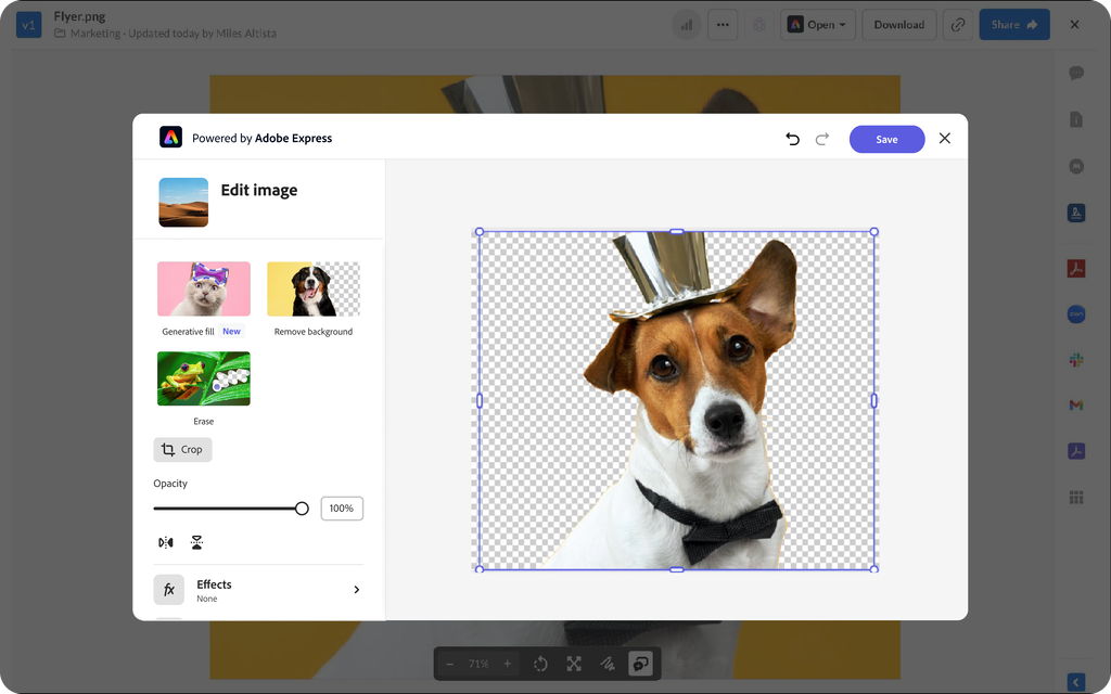 Today, Box users must download image files and use external tools for editing, which disrupts workflows, increases content sprawl, and introduces risk. To solve this, Box has partnered with Adobe to bring Adobe Express to Box, giving users the ability to make essential edits to images, such as: