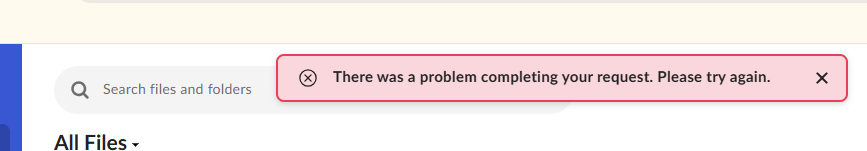 The issue depends on the progress of the large-scale folder operation causing the error. If you are still unable to perform any operations after 24 hours, please contact our customer support.