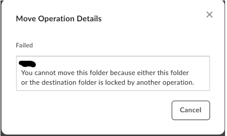 If a large-scale folder operation is in progress, actions on the source and destination folders, as well as their parent and subfolders, are restricted.