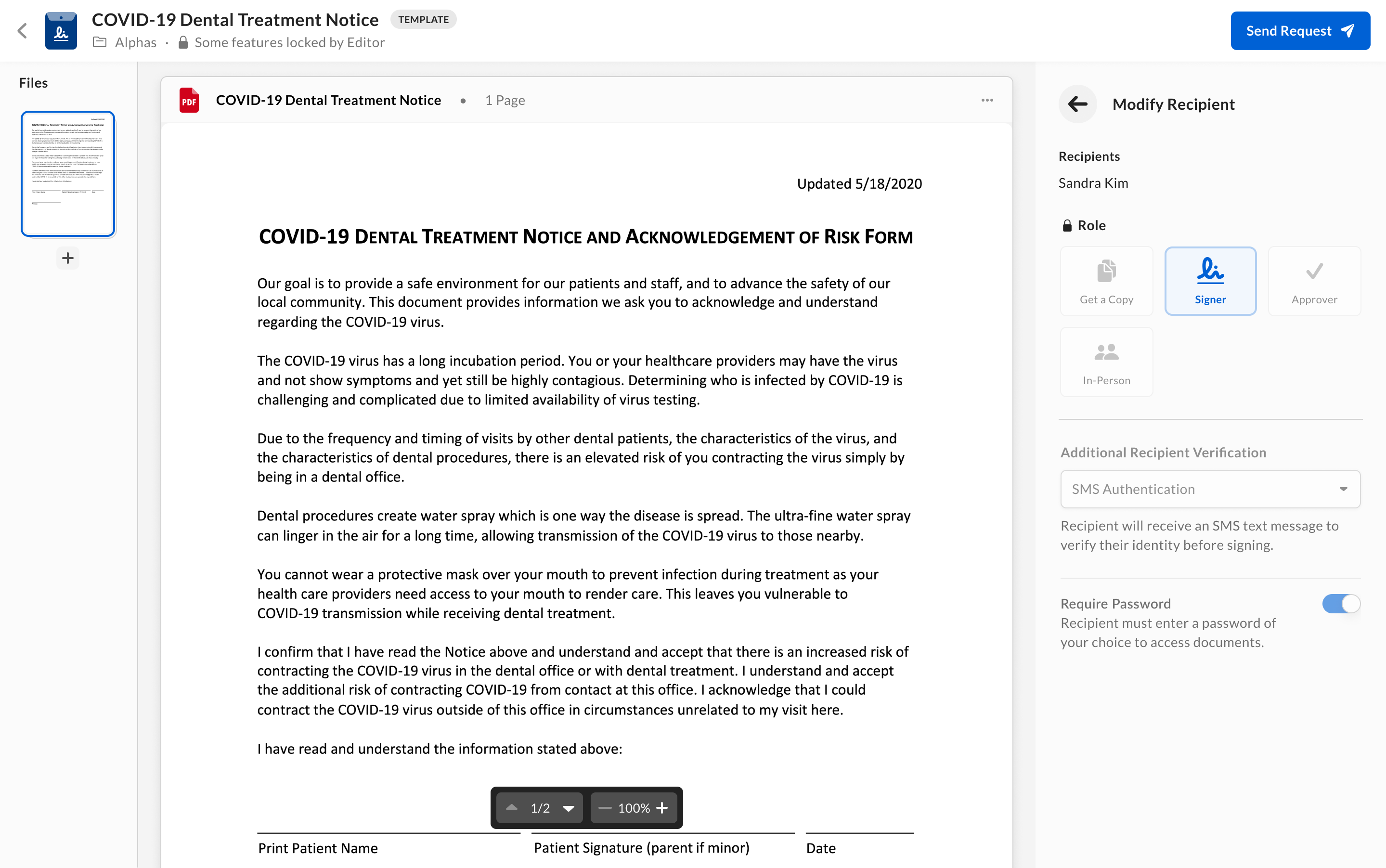We have released the ability for users and admins to configure signer authentication methods within reusable templates, as well as the ability to lock those settings to prevent other users from modifying them when sending the template out for signature or approval. This new enhancement gives template owners more control over their templates, how those templates are used in signature requests, and how recipients are authenticated using those templates.
