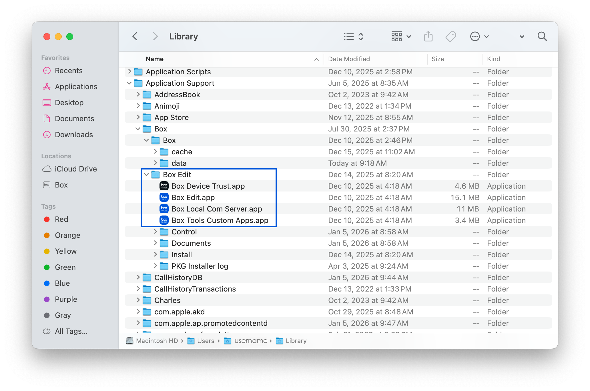 - Go to ~Library/Application Support/Box/Box Edit folder.