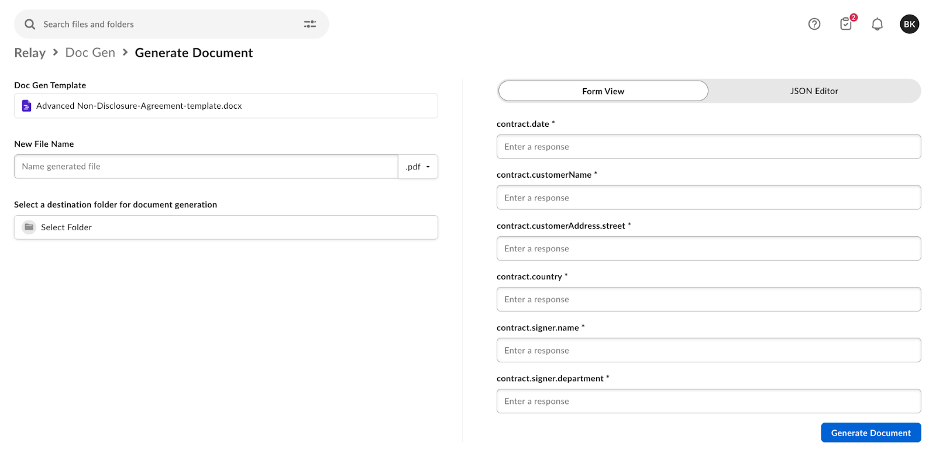 Generating Documents Using Doc Gen UI
