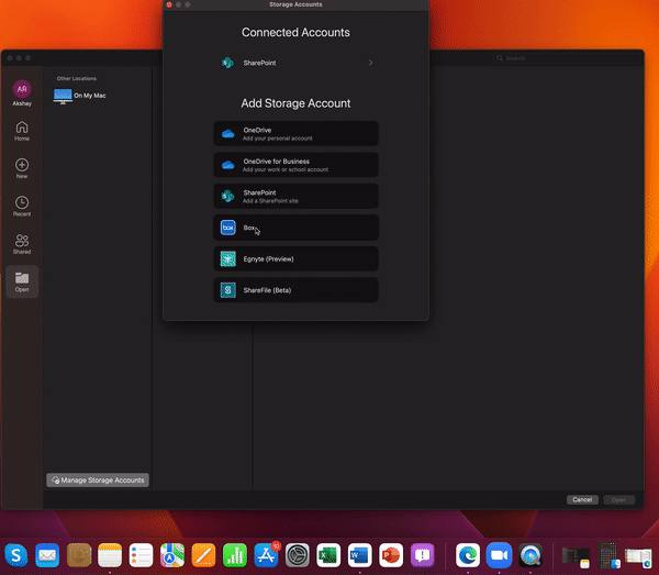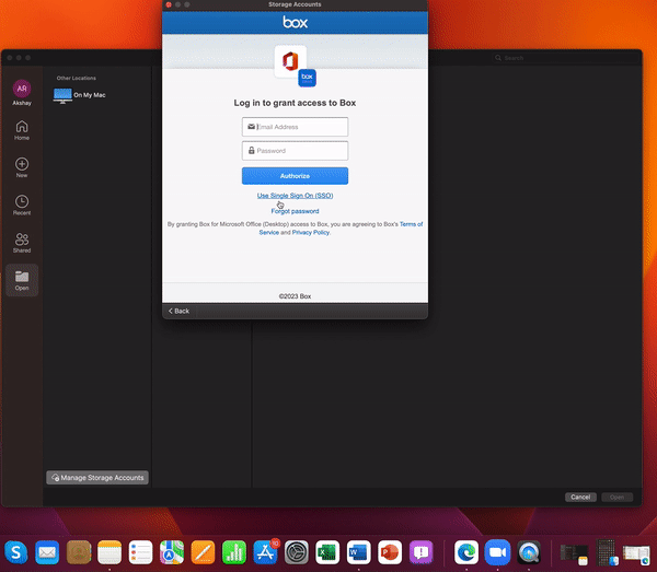 To start co-authoring, add Box as an online storage location from within the Microsoft Office desktop app. Follow these steps for your specific operating system.