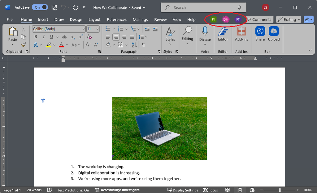 - ここで、そのドキュメントで作業しているメンバー全員がわかります。