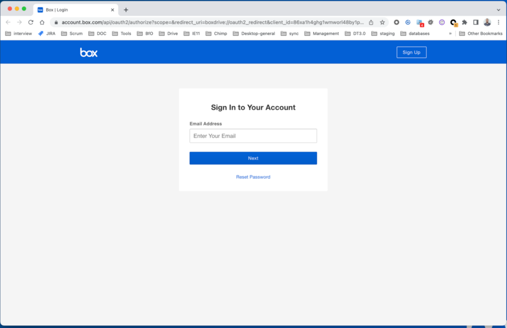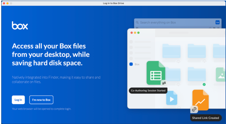 ユーザーがログインしていないときにBox Driveを開くと、次の画面が表示されます。