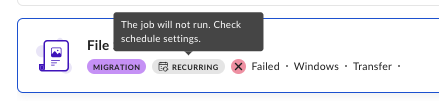 - 何らかの理由で移行ジョブをすでに実行している場合、スケジューラでは、最初のジョブの実行中に実行するよう設定された追加のジョブが失敗します。