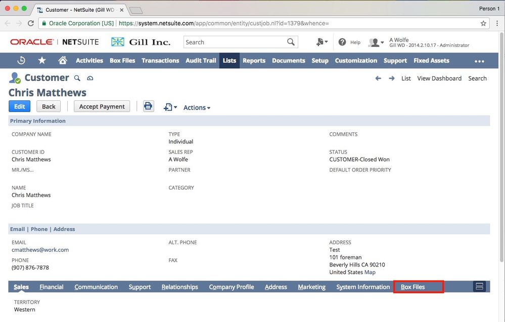 [Box Files (Boxファイル)] タブは「Box Files Tab」スクリプトに依存しています。 スクリプトが展開されていない場合、タブはNetsuiteレコードビューに表示されません。