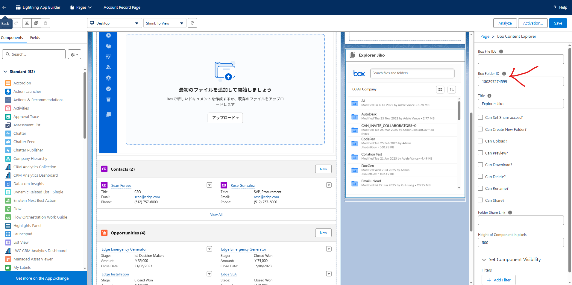 Experience CloudでBox UI Elementsを設定する際は、LightningコンポーネントにファイルまたはフォルダのIDを指定する必要があります。