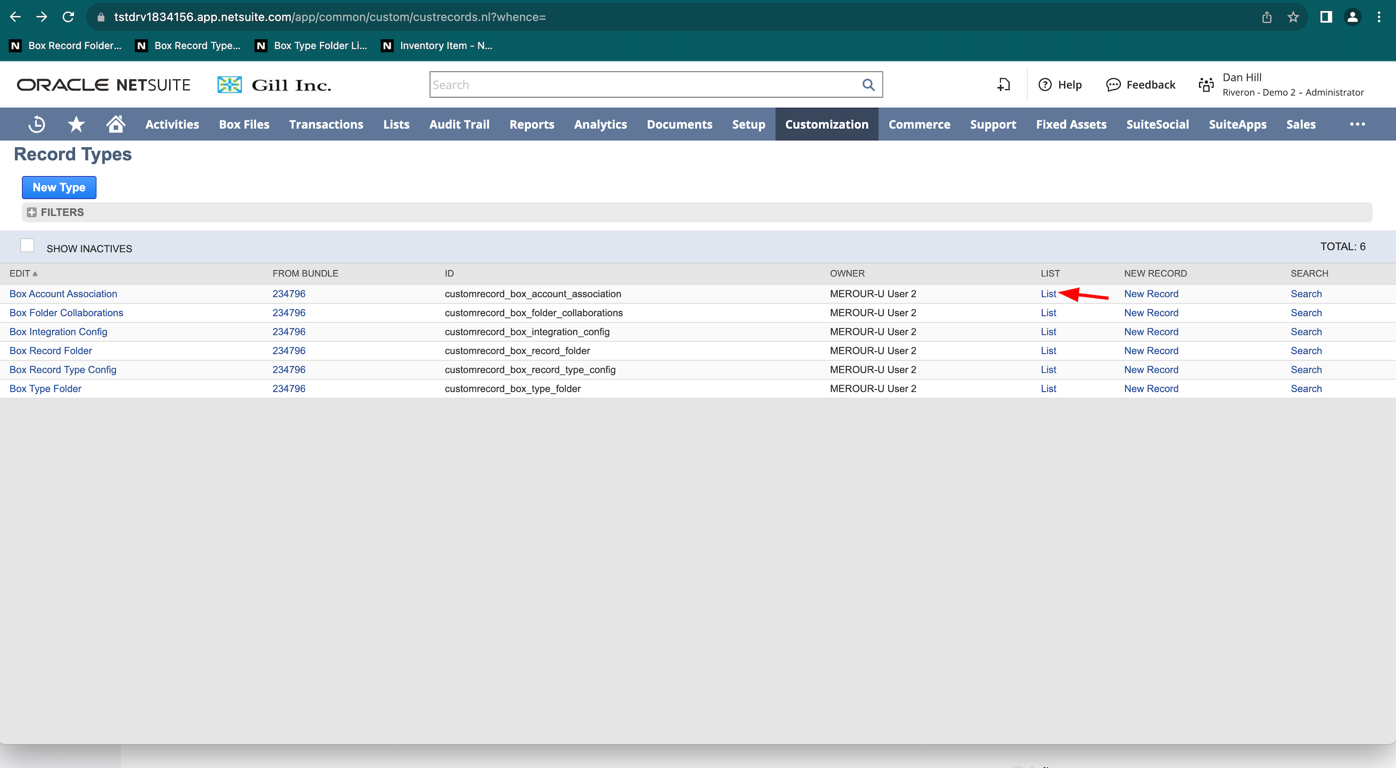 - NetSuiteで、[Customization] > [Lists, Records & Fields] > [Record Types] に移動します。