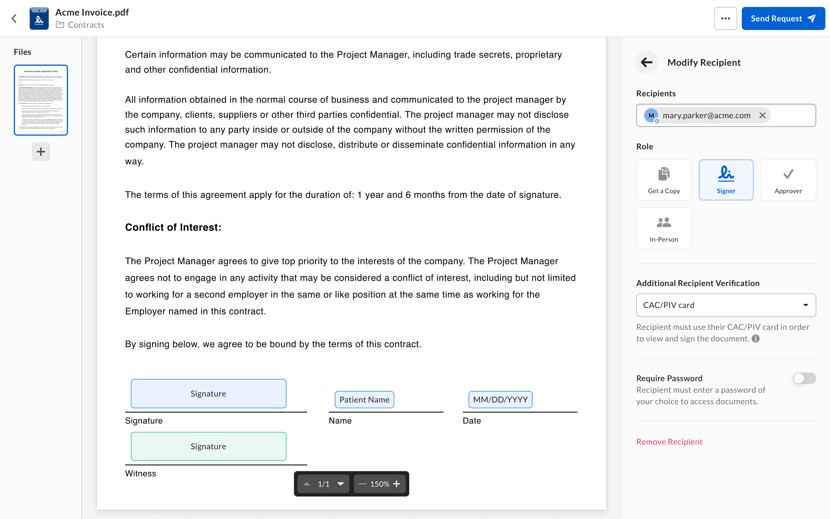 まもなく、米国連邦政府機関や請負業者が1つの署名リクエスト内で複数の署名者に署名をリクエストし、その署名者に自分のCACまたはPIVスマートカードを使用して自身を認証することおよびその使用を強制する機能をリリースする予定です。 これにより、米国連邦政府機関や請負業者は、複数の署名者を必要とする幅広いユースケースやビジネスプロセスに柔軟に対処できるようになります。