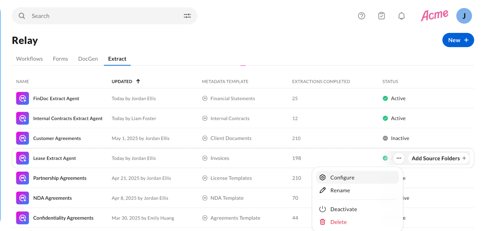 Box Extractダッシュボードでは、特定のエージェントのをクリックすることで、抽出エージェントを構成できます。