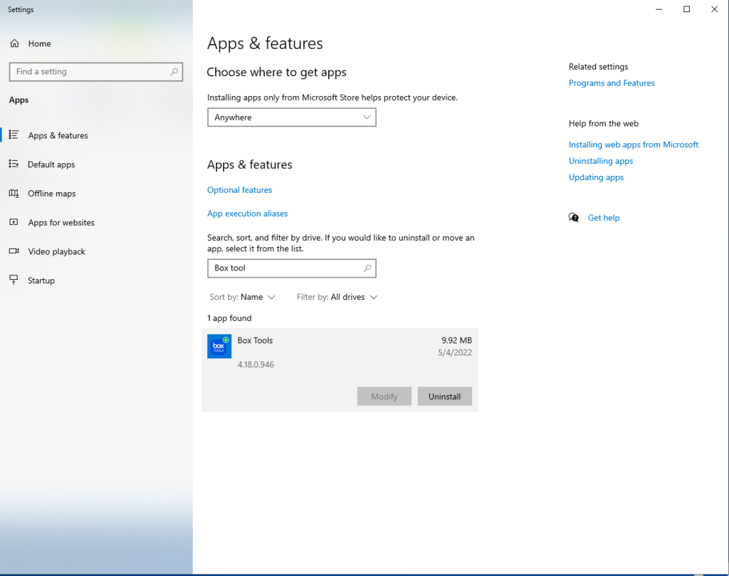- Box Toolsを検索してそれをクリックし、アプリケーションのバージョン番号を確認します。